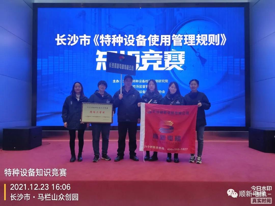 12月份参加由湖南省特种设备检验检测研究院、长沙市市场监督管理局和长沙市特种设备安全管理协会联合举办的《长沙市特种设备使用管理规则》知识竞赛,获得团体第三名。