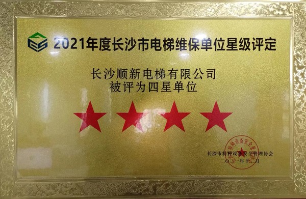 2021年,2023年长沙bsport有限公司连续2次被长沙市特种设备协会评为“四星级”维保单位。